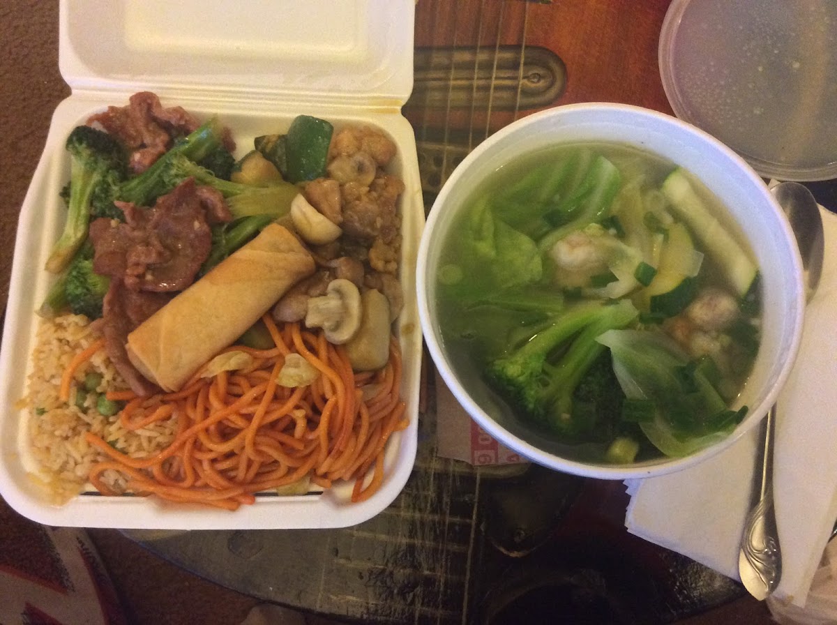 For diners who enjoy a well-rounded plate, the Two Side Special & Wonton Soup is a great pick. This option lets you sample multiple flavors in one meal. Pairing savory sides with a warm bowl of wonton soup creates a comforting combination that works especially well for lunch. The soup itself is light but flavorful, with delicate wontons floating in a clear broth.